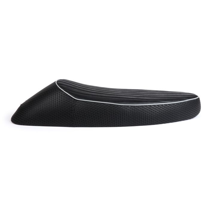 Le cadre du banc est fabriqué en plastique ABS résistant aux chocs et durable. La couverture est agrafée tout autour et donc fixée de manière très sûre et permanente (et non simplement collée comme c'est généralement le cas). Le cadre est équipé de six patins en caoutchouc. Cela répartit très bien la charge sur l'ensemble du cadre et donne au banc une sensation de solidité et d'assise complète. La charnière de banc est typiquement Nisa très massive et solide et donc très résistante. De plus, il est vissé et peut (dans le cas très improbable d'un défaut) être remplacé. Disponible pour Vespa Smallframe et Largeframe (les modèles Largeframe avec réservoir haut (GS160, SS180, Rally180/200 ont besoin du réservoir plat des modèles Sprint/PX).