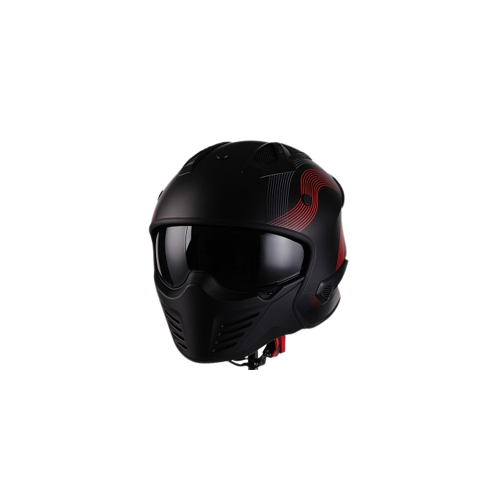 Avec le casque Bruzano de Vito, vous démarrerez à coup sûr. Le casque a un design agressif et cela se remarque certainement ! Le Bruzano peut être utilisé comme casque intégral normal, mais également sans masque facial. Le pare-fumée est également facile à plier. Le Vito Bruzano en noir mat est disponible dans les tailles XS à XL.Propriétés de Vito Bruzano :