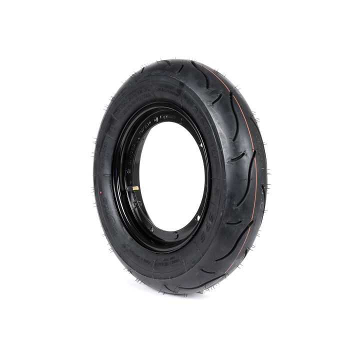 Roue complète (pneu monté sur jante) BGM Sport, Vespa Largeframe PX, Sprint, Rally, GT, GTR, TS, T4, LML Star/Stella 3,50 10 pouces TT 59S (renforcée) jante en acier, peinte 2.10 10 noir