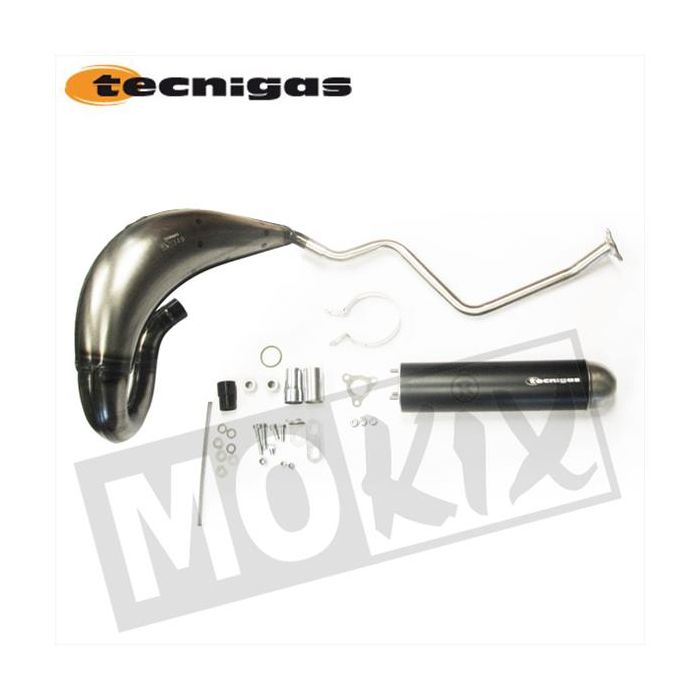 La fonction principale de l'échappement est de couper le son. Il est donc très important de le remplacer en cas de fuite. Si vous souhaitez que votre trottinette gagne en puissance/puissance, nous vous recommandons de monter un échappement sport. Avec un réglage correct de l'embrayage et du carburateur, votre scooter aura de meilleures performances qu'un échappement standard ! Cet échappement de la marque Tecnigas est d'excellente qualité !
