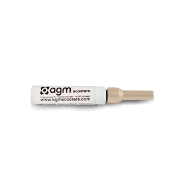 Regardez bien la couleur que vous devriez être, c'est généralement sur le scooter ou dans le manuel qui peut être inclus. De plus, l'AGA de nombreuses couleurs n'a que 1 ou 2 nuances, il n'est donc pas très difficile de trouver la bonne couleur. Parce qu'il n'est pas toujours facile de trouver exactement la bonne couleur, AGM travaille avec des couleurs originales qu'ils utilisent également lors de la pulvérisation de leurs hottes. Plus besoin de remplacer la totalité de votre hotte. Si vous subissez des dommages à votre scooter AGM, il n'est généralement pas idéal de remplacer le capot entier. Surtout en cas de dommages mineurs, il est souvent dommage de remplacer l'ensemble du capot. Zandri propose la solution ! Avec ce stylo à peinture de la couleur d'origine AGM ; café/crème, soulage les rayures et les dommages en un rien de temps. En plus de la fonctionnalité, ce stylo à peinture est également pratique. Bien entendu, il est plus facile d'enlever une rayure que de remonter une hotte entière. Ce stylo de peinture de couleur est idéal pour l'AGA Retro Pimpstyle Plus.| Numéro d'article | AGM-AGM11ZA |