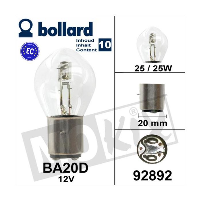 Ampoule BA20D 12V 25/25W couleur CE (10)