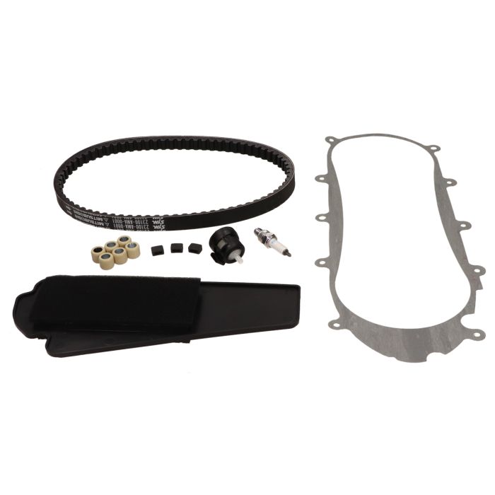 Ce package de maintenance Sym d'origine contient les pièces suivantes : - Boîte à air - Filtre à essence - Bougie d'allumage CR6HSA - Courroie en V - Set de rouleaux Vario de 5 grammes - Set de conducteurs Vario - Couvercle de carter, joint Bien entendu, vous avez toujours besoin d'huile de carter pour le moteur et d'huile de transmission pour la transmission de la roue arrière. Vous pouvez trouver ces huiles ci-dessous. Les pièces de l'image ci-dessus peuvent différer de celles reçues. L'image explique le type de pièces qu'elle contient.À quoi correspond ce package de maintenance ?