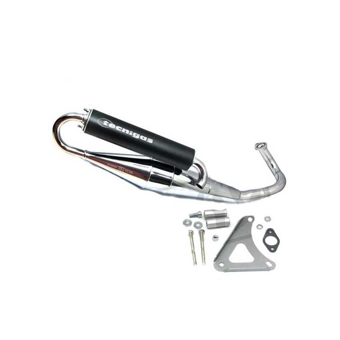La fonction principale de l'échappement est de couper le son. Il est donc très important de le remplacer en cas de fuite. Si vous souhaitez augmenter la puissance/la puissance de votre trottinette, nous vous recommandons d'installer un pot d'échappement sport. Avec un réglage correct de l'embrayage et du carburateur, votre scooter offrira de meilleures performances qu'un échappement standard ! Ce pot d'échappement de la marque Tecnigas est approuvé et d'excellente qualité !
