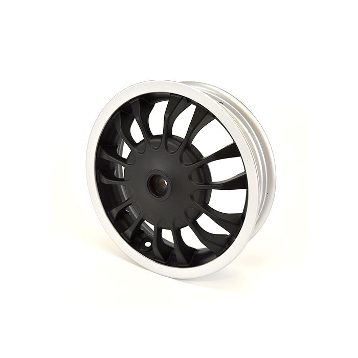 Jante arrière Piaggio 3.00-12 pouces/diamètre du tambour de frein = 140 mm - 14 rayons - Vespa Sprint 50 (ZAPC53101)/Sprint 125/Sprint 150 - noir mat/jante argentée 605910M002 original