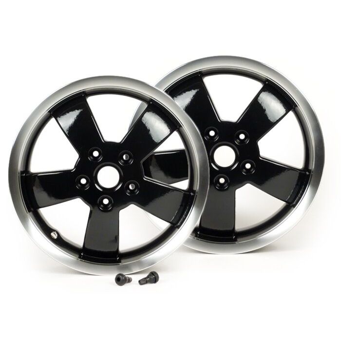 Jeu de jantes Piaggio 2017 Super noir avec bord poli, 3,00-12 pouces 5 rayons Vespa GT, GTL, GTS, GTV 125-300cc années 2003-2016