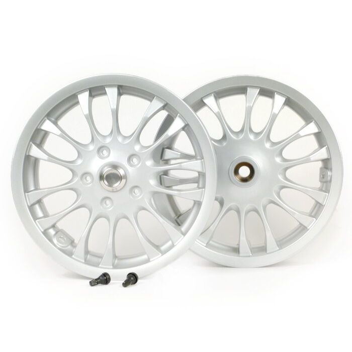 Jeu de jantes Piaggio 3,00-12 pouces 10 rayons type Sprint adapté pour Vespa Sprint 50 (ZAPC53201),Primavera 50 (ZAPC53200) argent